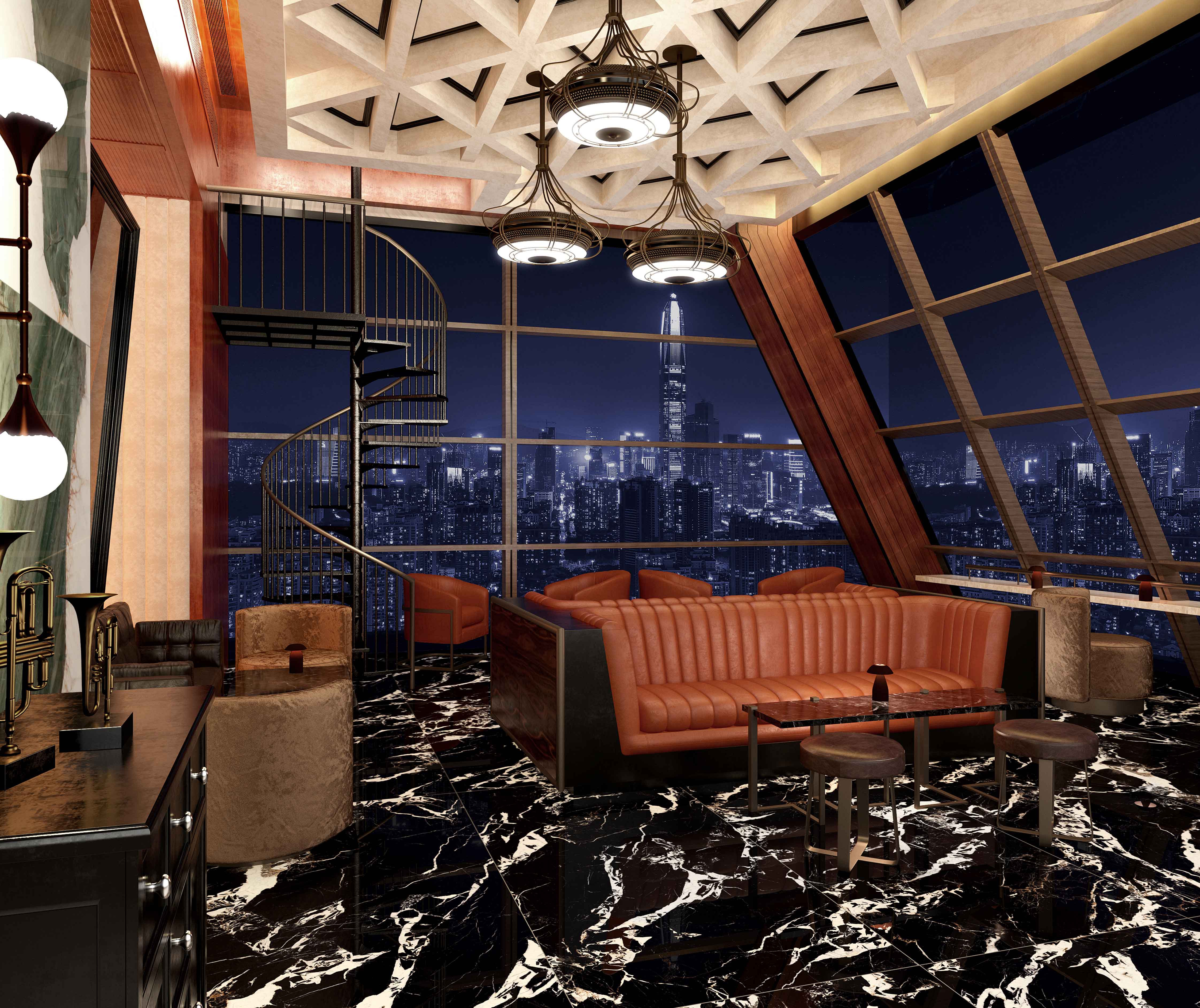 黑的濃烈,白的純粹,肆意鎏金靈動灑脫,一眼難忘。似黑色沙灘上翻滾的浪花,又似暗夜凌冽的阿爾勒閃電幻化出時尚經典,構成奇妙的視覺吸引力。擁有不著邊界的神秘感,也不乏成熟氣息,黑白撞色,大氣張揚。整體鋪貼增加空間的動感,形成視覺的延伸效果。