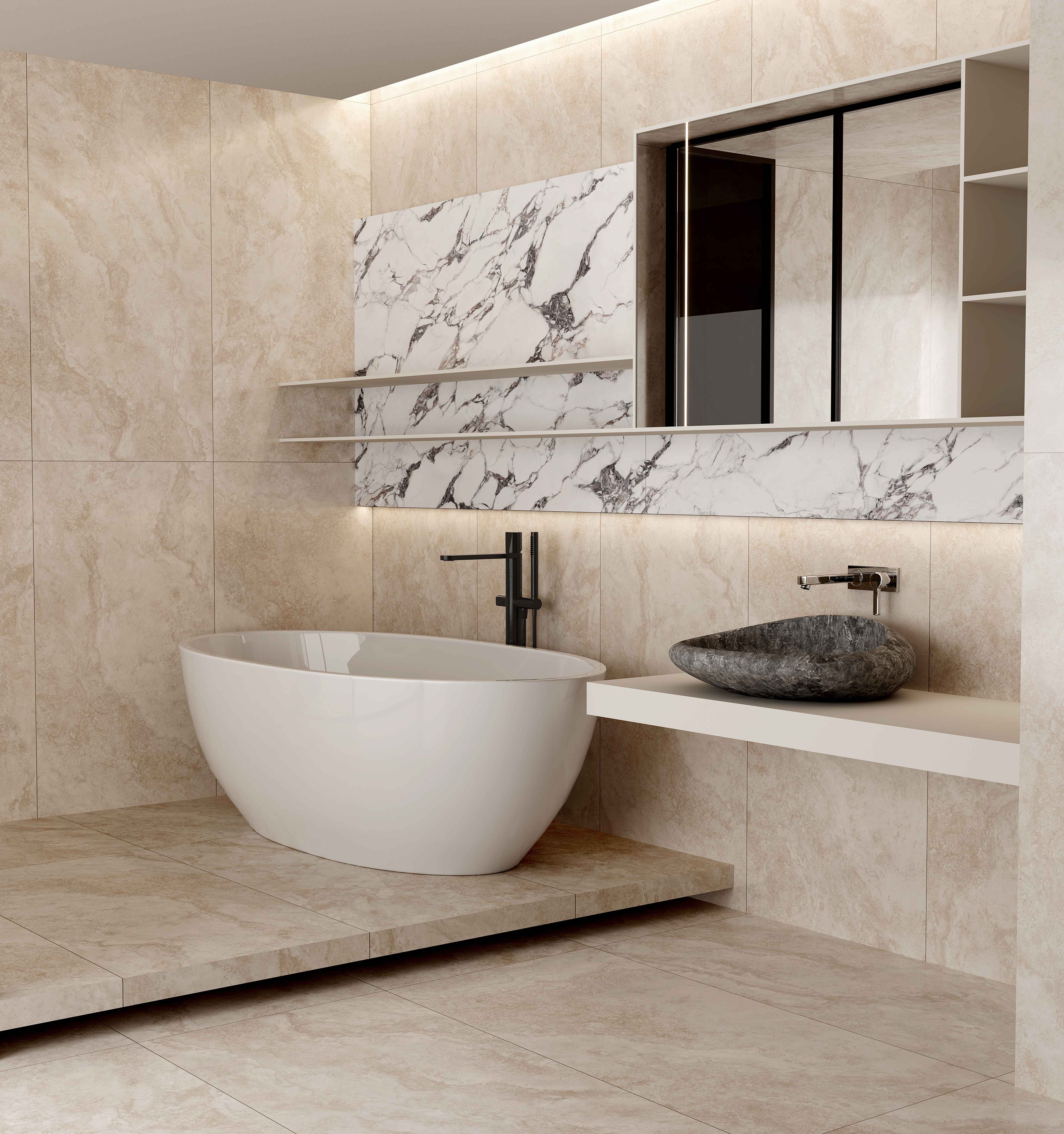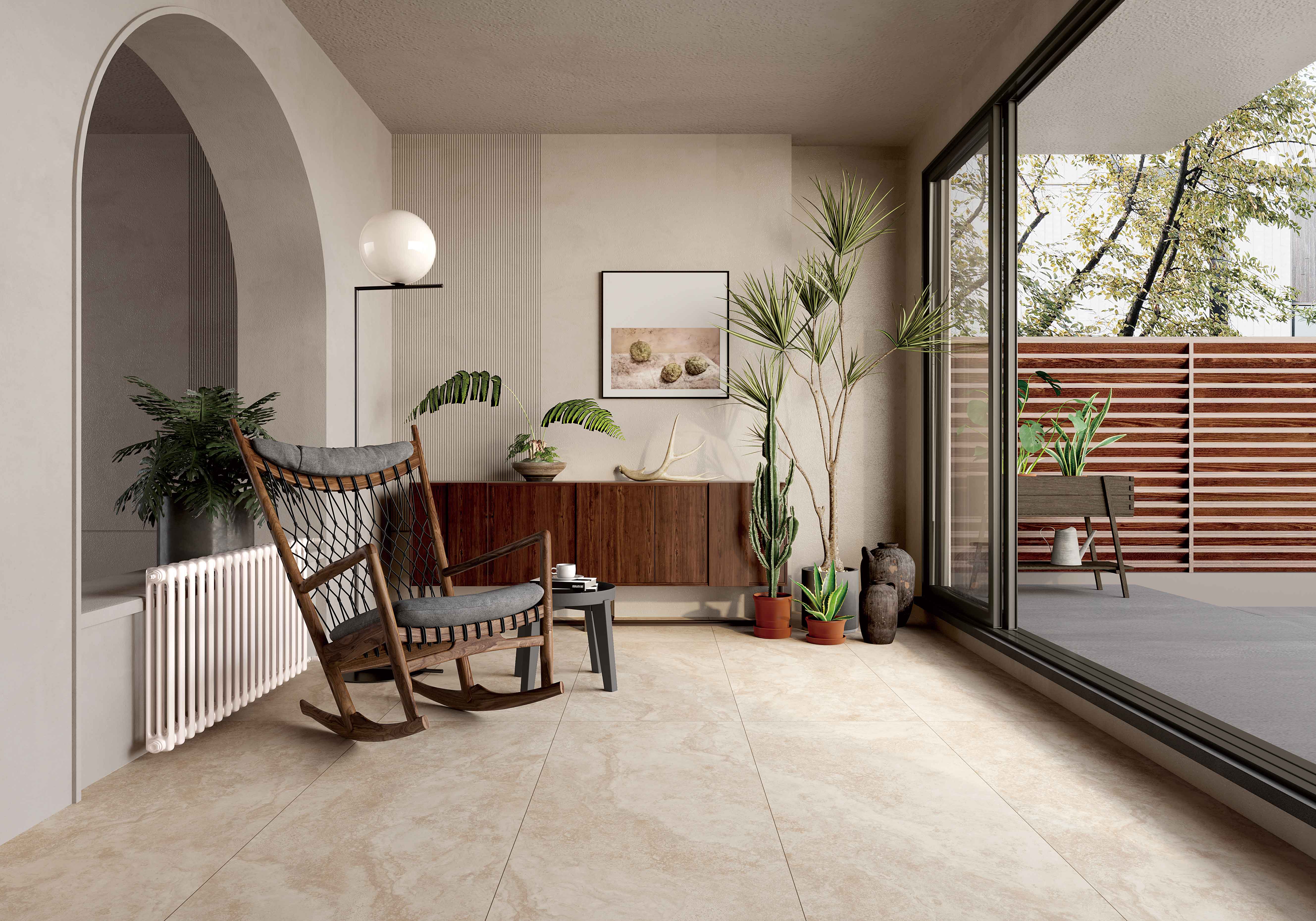 溯源億萬年前波特蘭島的自然美學與歐洲建筑經典美學,復刻經典洞石獨有的孔洞肌理,或張揚、或粗狂、或熱情、或冷酷融合水泥斑駁的肌理質感,打造出一種極具現代感和飽滿質感的空間效果,讓人有回歸本質與自然的感覺。